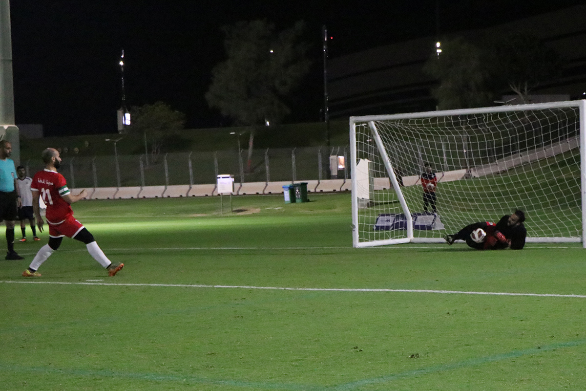 وفي سيناريو قاسٍ، ومع تبقي ثوانٍ معدودة من الوقت بدل الضائع، نجح فريق شباب النصر في تسجيل هدف التعادل، ليخطف المباراة إلى ركلات الترجيح، التي لم تنصف الفريق، حيث انتهت بنتيجة 3 : 2 لصالح شباب النصر، بعد تسجيل فهد حامد وغيث محمود بنجاح، وإهدار الركلة الثالثة عن طريق قائد الفريق محمد فرج المري.